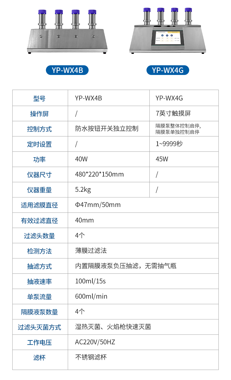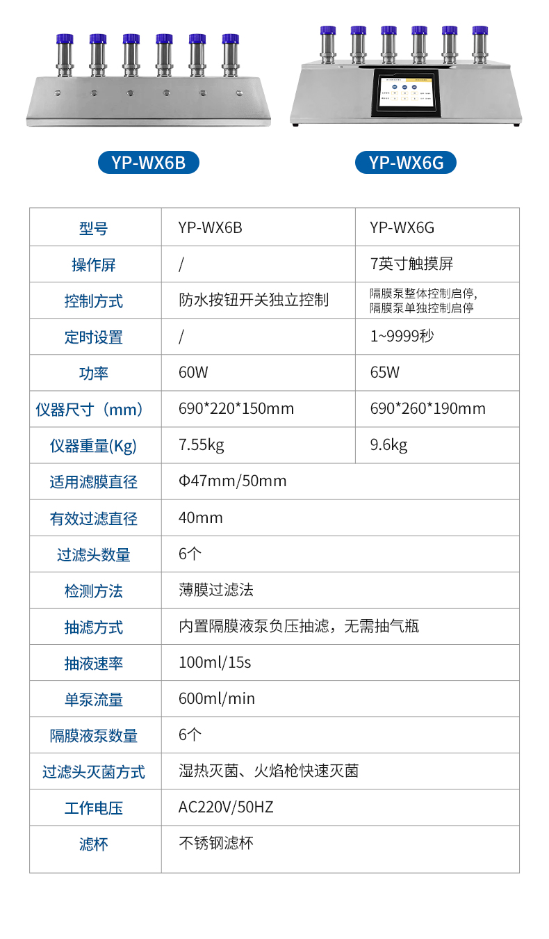 7.多規格過濾頭設計,可同時抽濾,提高工作效率,每個濾頭也可獨立控制,方便操作人員靈活使用;