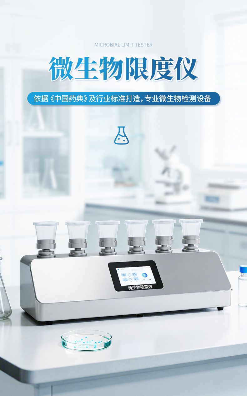 微生物限度儀是依據《中國藥典》及相關行業標準設計制造的專用微生物檢測設備。該設備通過負壓抽濾方式將供試液中的微生物截留于濾膜上,經培養后形成可見菌落,并通過計數準確測定樣品中的含菌量。適用于藥品、食品、化妝品、化工等行業的微生物限度檢查。