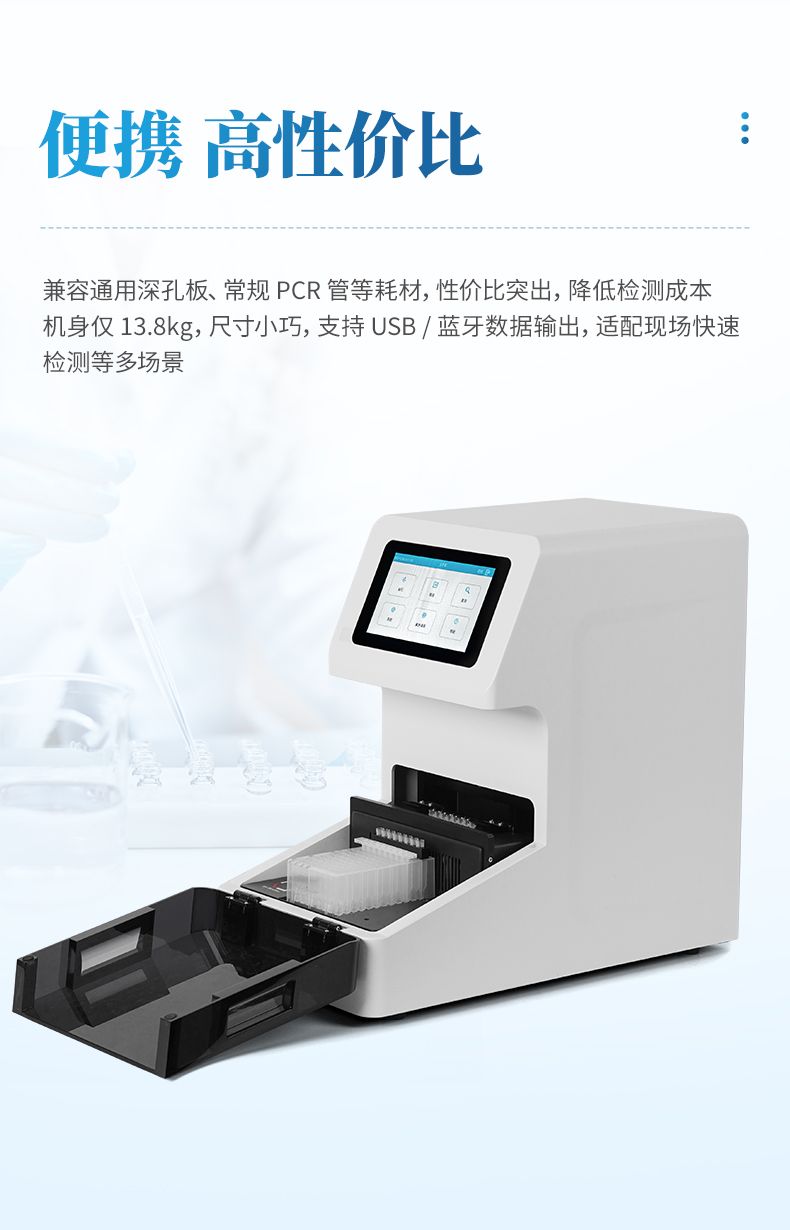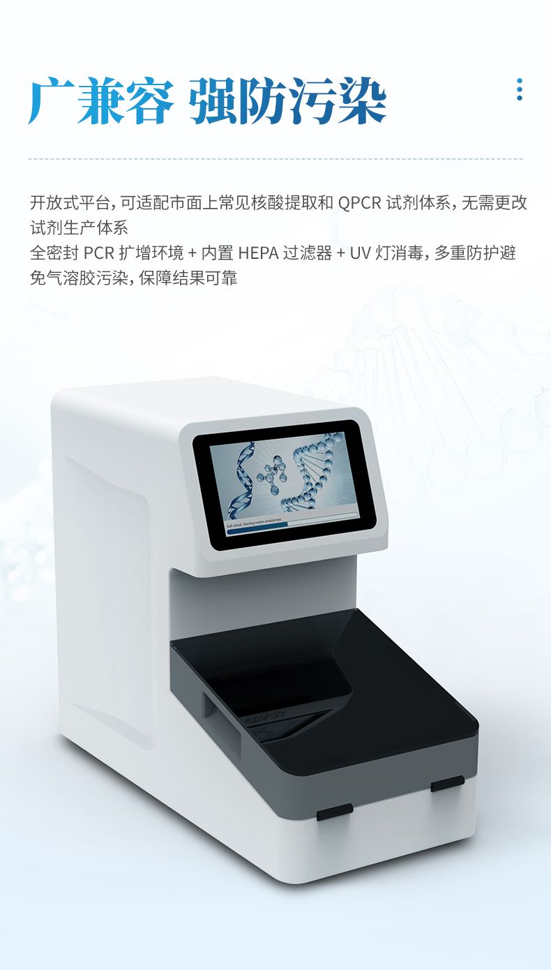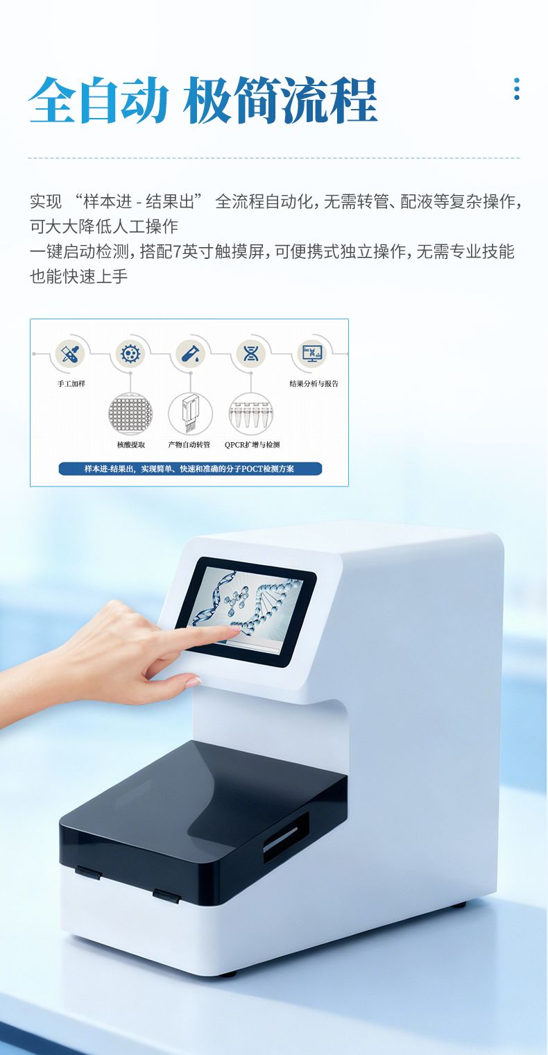 集核酸提取,熒光定量擴增,檢測為一體的全自動分子檢測一體機。
