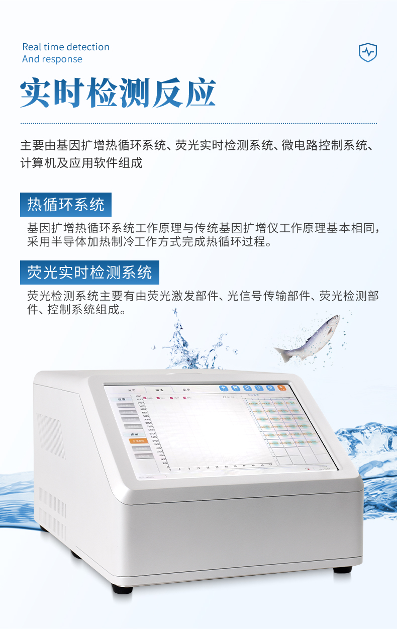 魚蝦病毒檢測儀采用實(shí)時(shí)定量聚合酶鏈?zhǔn)椒磻?yīng)(qPCR)技術(shù),是一種常用的分子生物學(xué)技術(shù),用于檢測水產(chǎn)養(yǎng)殖中的病毒。PCR檢測儀可以擴(kuò)增和檢測特定病毒的核酸序列,從而確定是否感染了特定的魚類或蝦類病毒。