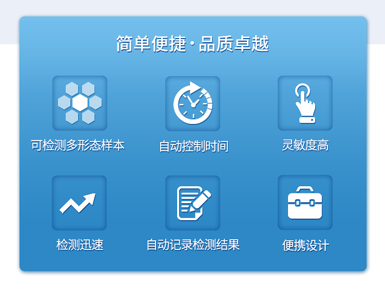 4) 檢測樣本只需1ml/1g;同一溫度下可同時檢測8個樣品;