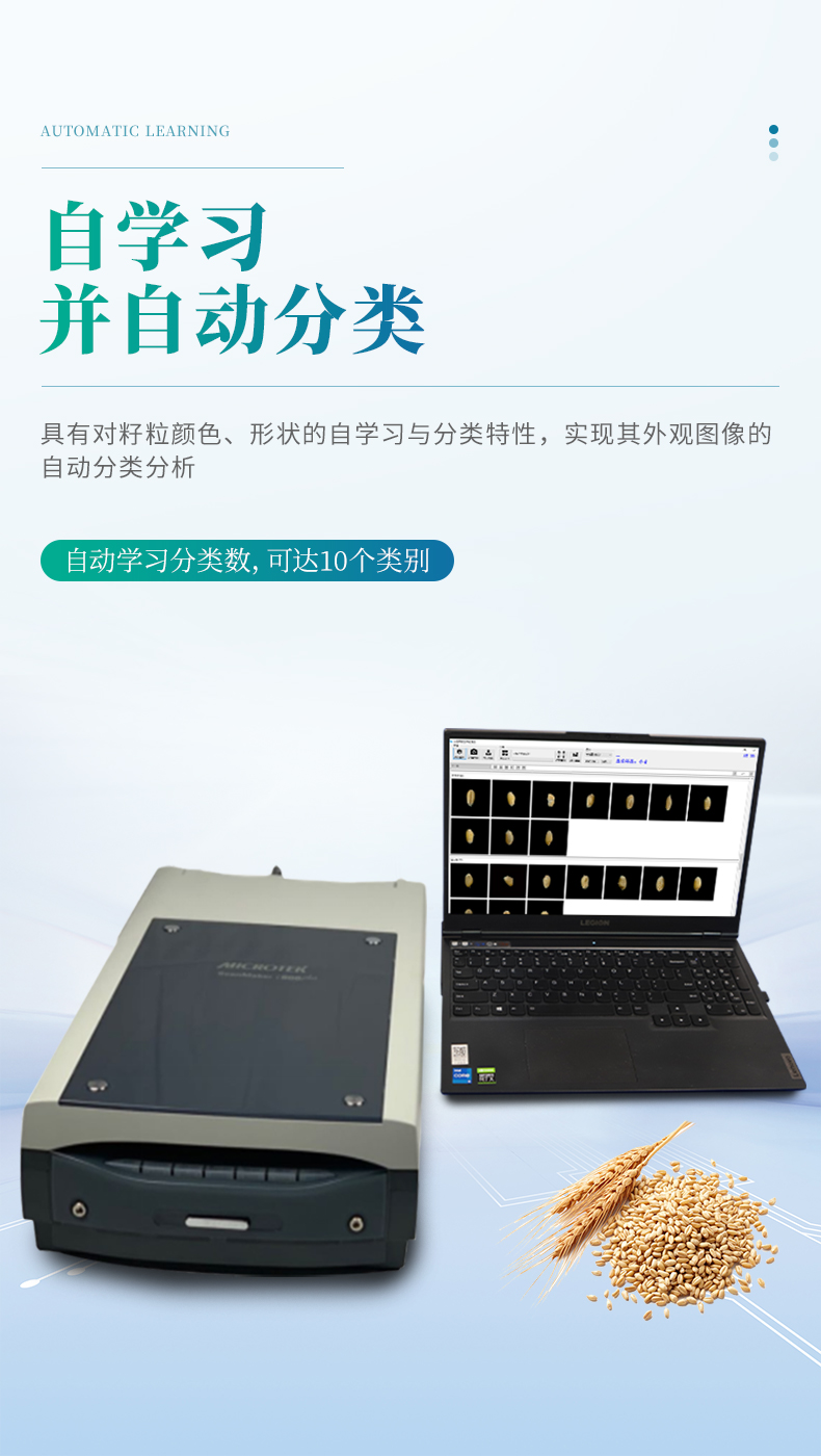 6.具有按園林協會RHS2015比色卡的自動比色特性,根據正常籽粒與各類非常籽粒顏色、紋理、形狀上的差異來自動識別與分類分析,具有對籽粒顏色、形狀的自學習與分類特性,實現其外觀圖像的自動分類分析(自動學習分類數*多可達10個類別)