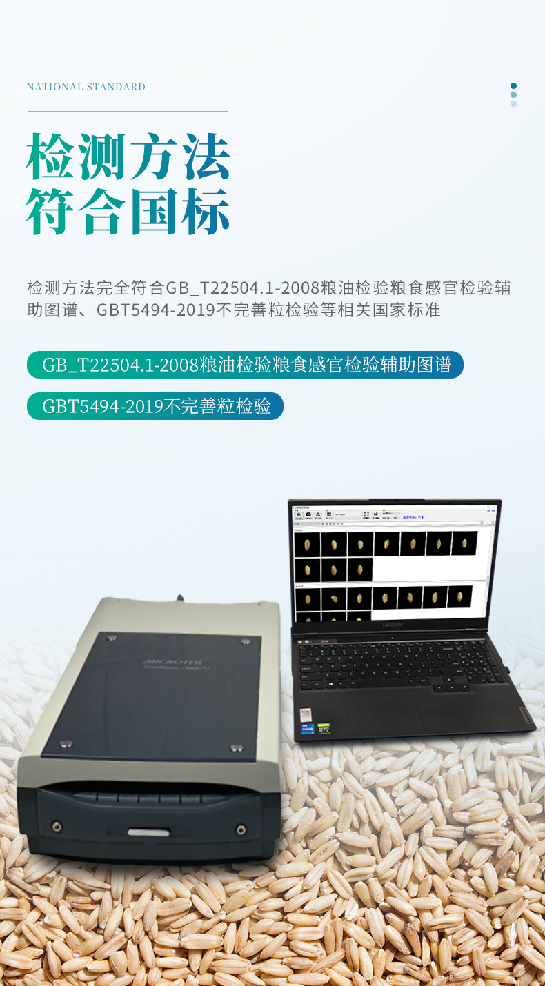 1.檢測方法完全符合GB_T22504.1-2008糧油檢驗糧食感官檢驗輔助圖譜、GBT5494-2019不完善粒檢驗等相關國家標準。