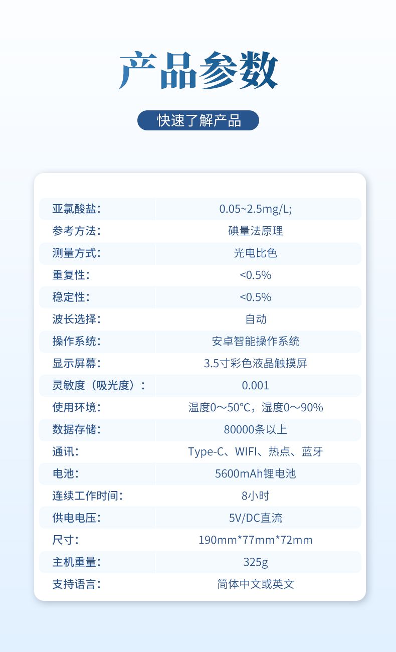 ⑥便攜式體積小,重量輕,方便戶外檢測;
