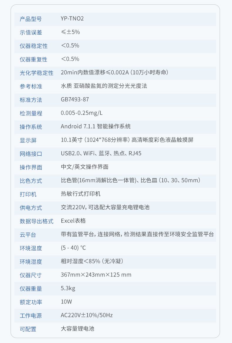 本儀器主要檢測水質亞硝酸鹽氮濃度指標,兼具智能數據分析功能,圖表、列表顯示數據,分析一目了然;高清晰度彩色液晶觸摸顯示屏,Android智能操作系統,中文顯示界面,中英文鍵盤,人性化操作,使用更簡單。