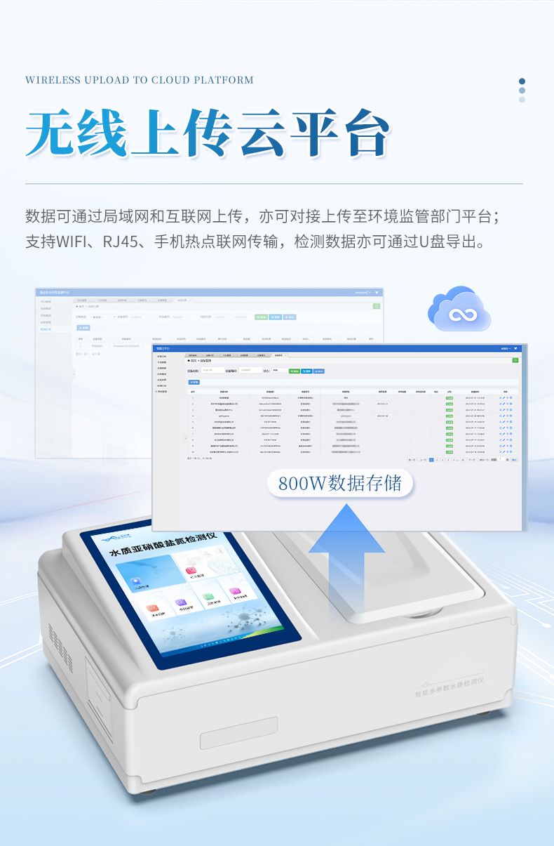 云平臺:儀器帶有監管平臺,連接有線/無線網絡,檢測結果直接傳輸至環境安全監管平臺。