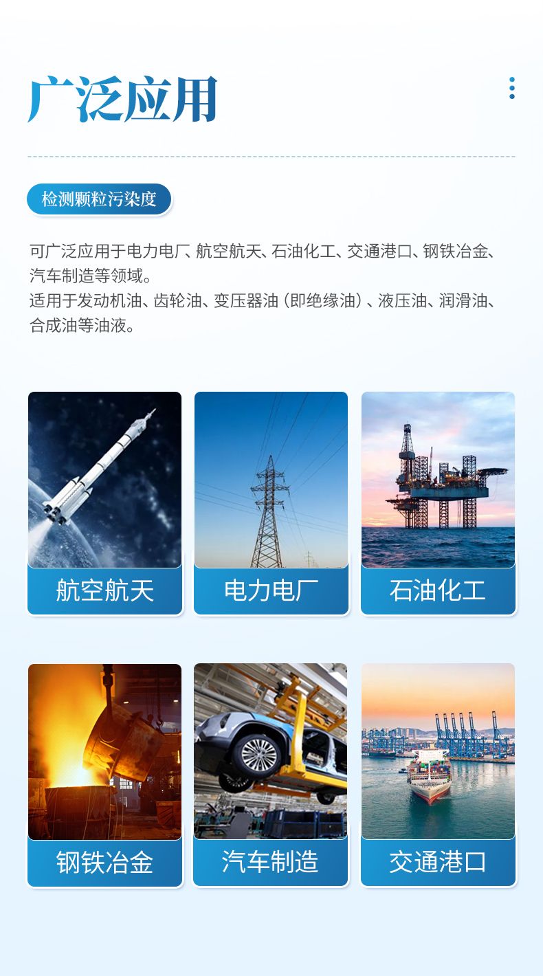 l  內置GJB-420A、GJB-420B、NAS1638、GB/T14039、ISO4406、SAE4059cpc、SAE4059F、SAE749D、ГOCT17216、QC/T29104、JB/T9737、DLT432、HH005-2018等十多個常用標準,一次測試可給出所有內置標準下的數據結果