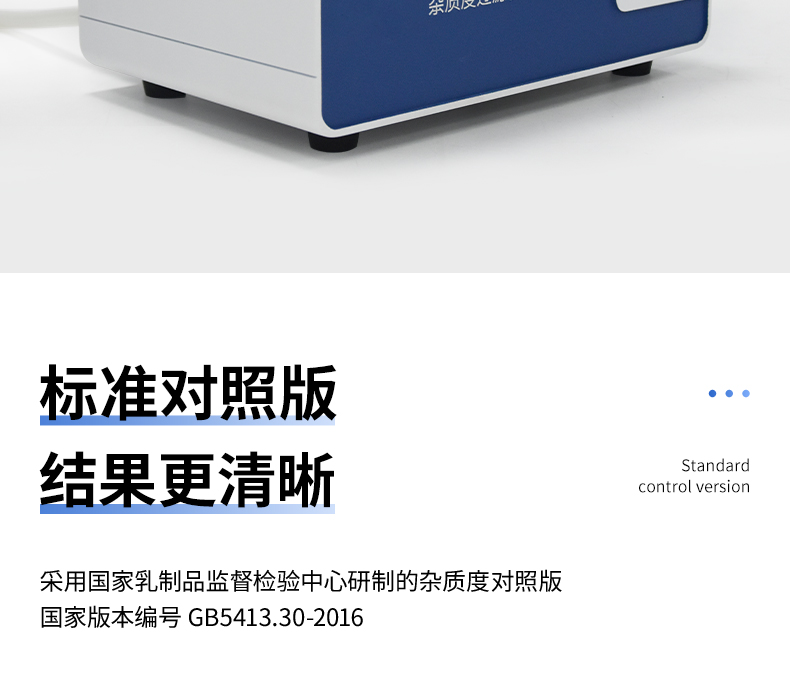 標(biāo)準(zhǔn)對照版采用國家乳制品監(jiān)督檢驗(yàn)中心研制的雜質(zhì)度對照版,國家版本編號 GB5413.30-2016。