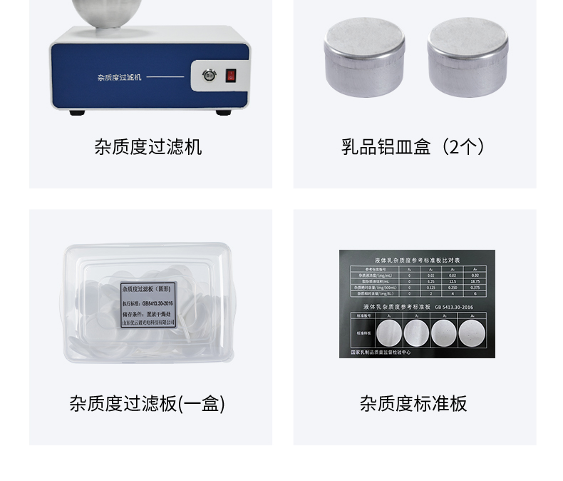 配置:主機(jī)一臺,乳品鋁皿盒二個(gè),雜質(zhì)度過濾板一盒,雜質(zhì)度標(biāo)準(zhǔn)板一張,雜質(zhì)度標(biāo)準(zhǔn)板使用說明一份,雜質(zhì)度過濾機(jī)使用說明書一份,實(shí)驗(yàn)規(guī)范一份,合格證一張)