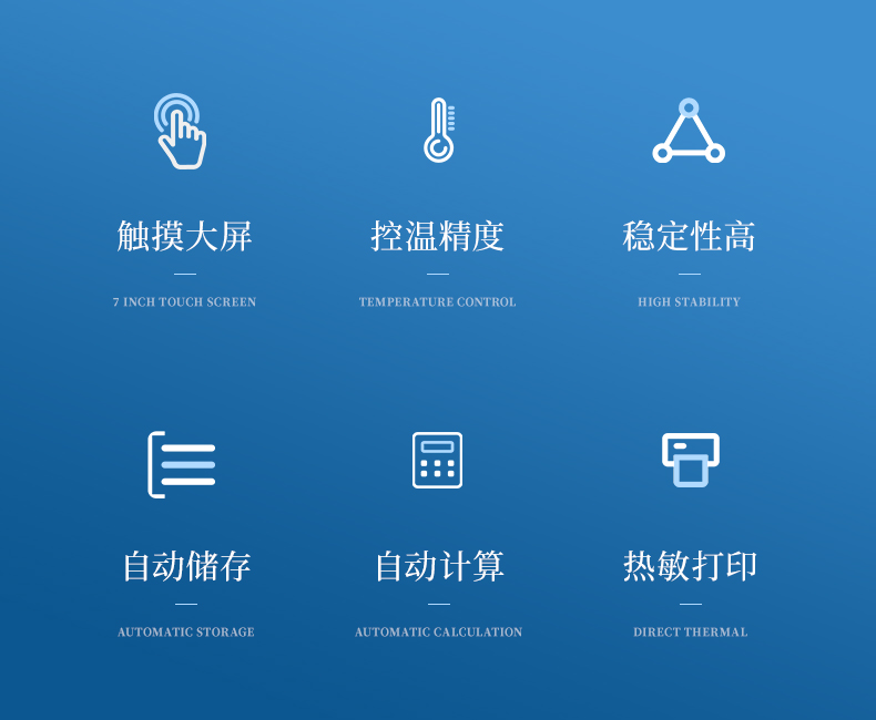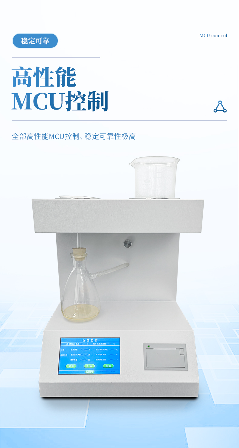 1.7寸高清觸摸屏操作,方便操作,漏斗恒溫浴和燒杯恒溫浴一體化設計提供工作效率