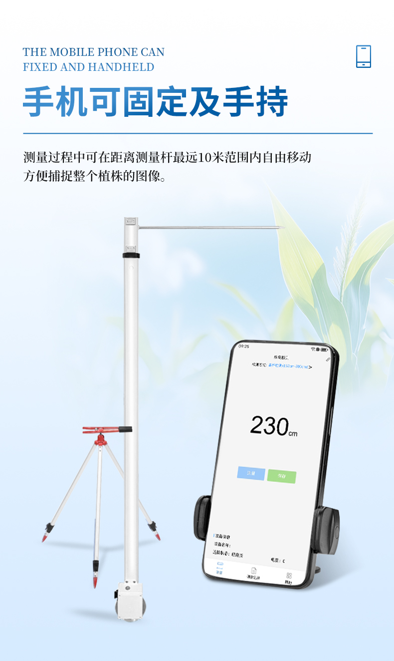 5.靈活性強(qiáng) - 手機(jī)可以固定或者手持操作,測量過程中可在距離測量桿最遠(yuǎn)10米范圍內(nèi)自由移動(dòng),方便捕捉整個(gè)植株的圖像。
