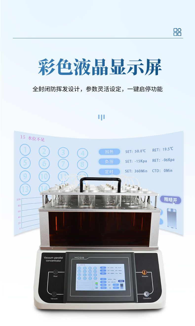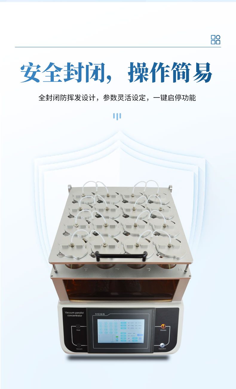 操作簡便、安全:靈活的工作參數設定、方便的樣品置入/取出過程,易學易用;蒸發通道全封閉設計可避免有機揮發組份對儀器及操作人員的傷害。